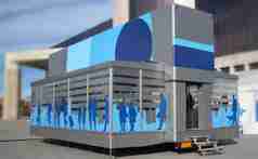 con 2 módulos laterales, 13.5m de largo y 14m de