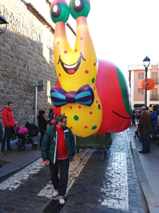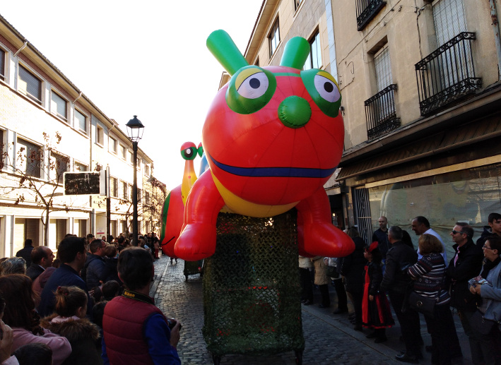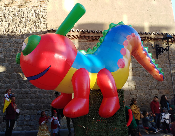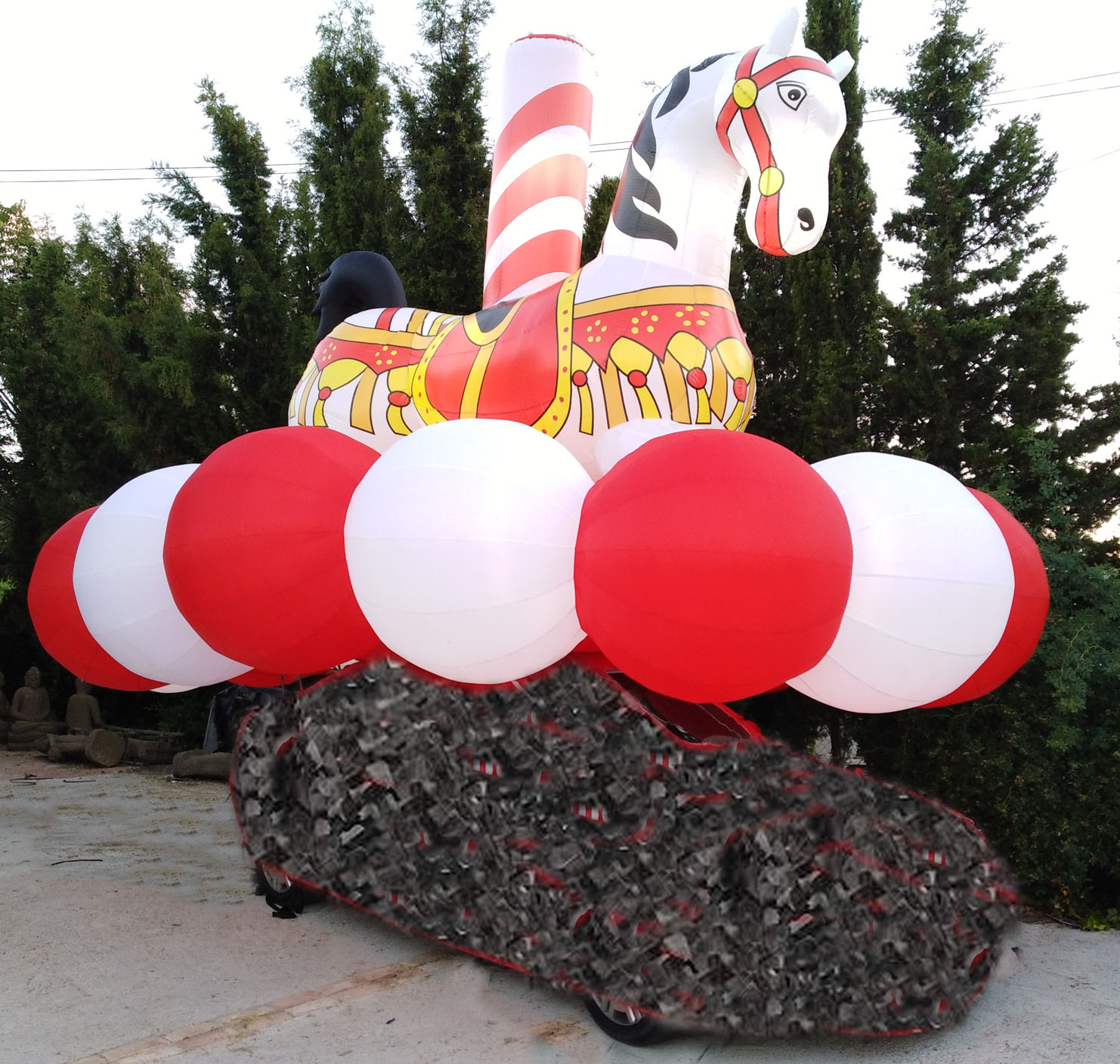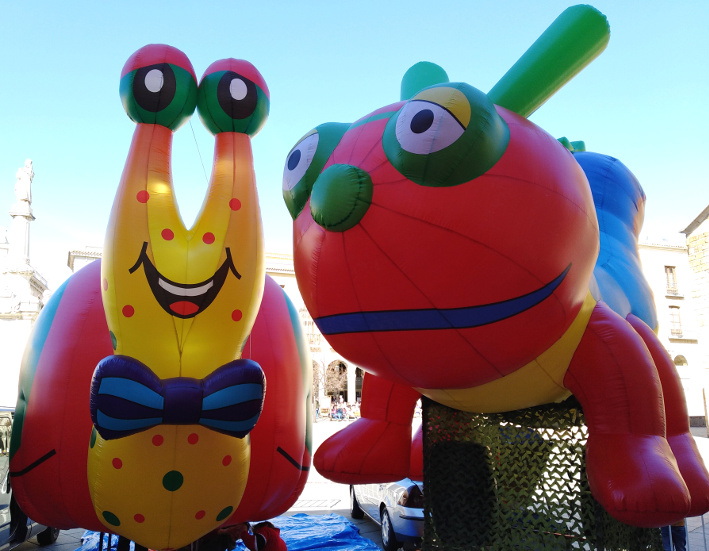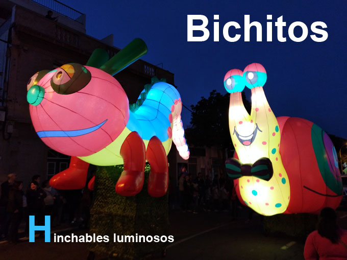 largo) Los hinchables, llenos de luz, van sobre dos estructuras-carros