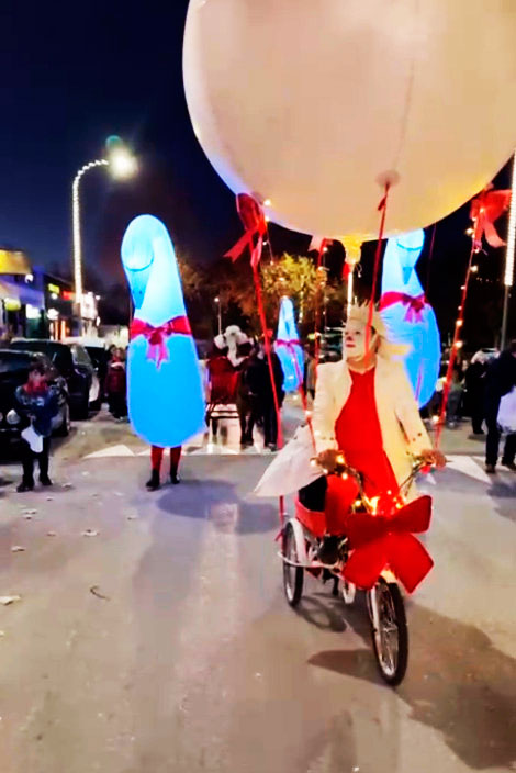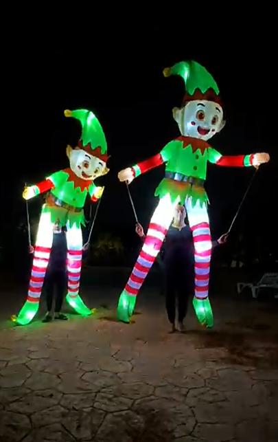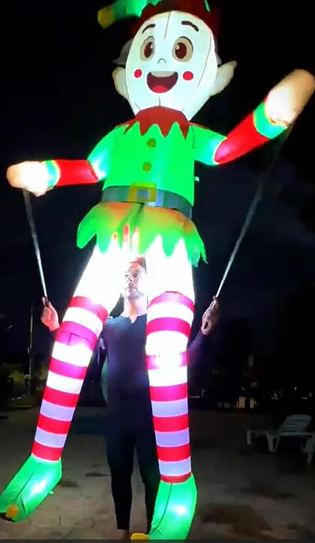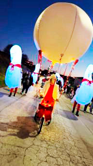 hinchables luminosos gigantes, payasos y música, sincronizado con