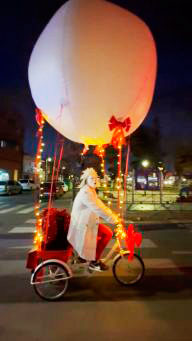 Acompañados de un divertido payaso con triciclo-globo, sobre el que va