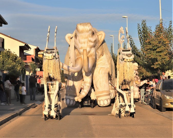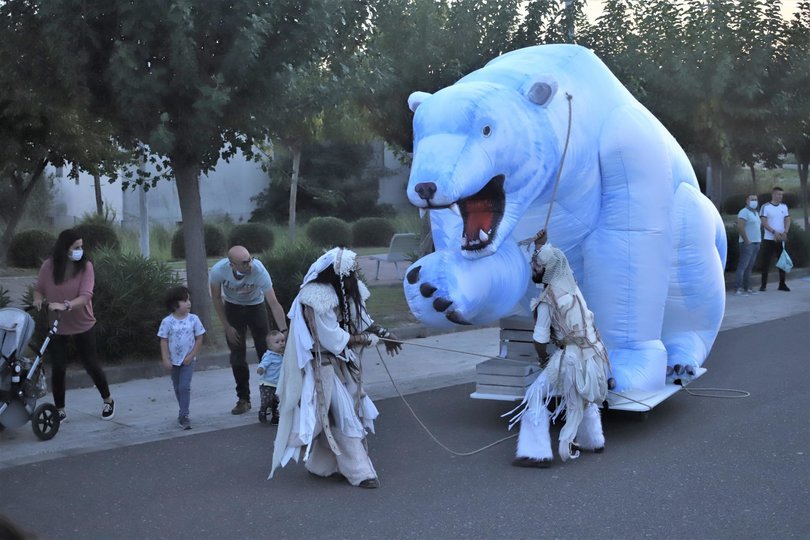 de calle con elementos hinchables gigantes. Espectáculo ideal para