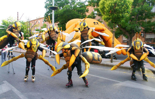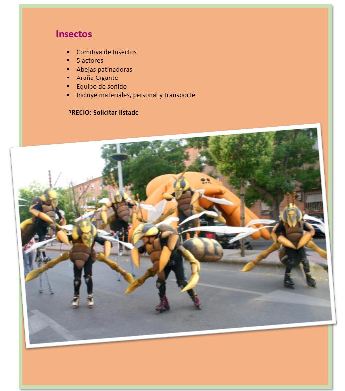 Comitiva Terrestre - 5 actores - Abejas Patinadoras - Araña Gigante - Equipo de sonido - Incluye materiales, personal y transporte.