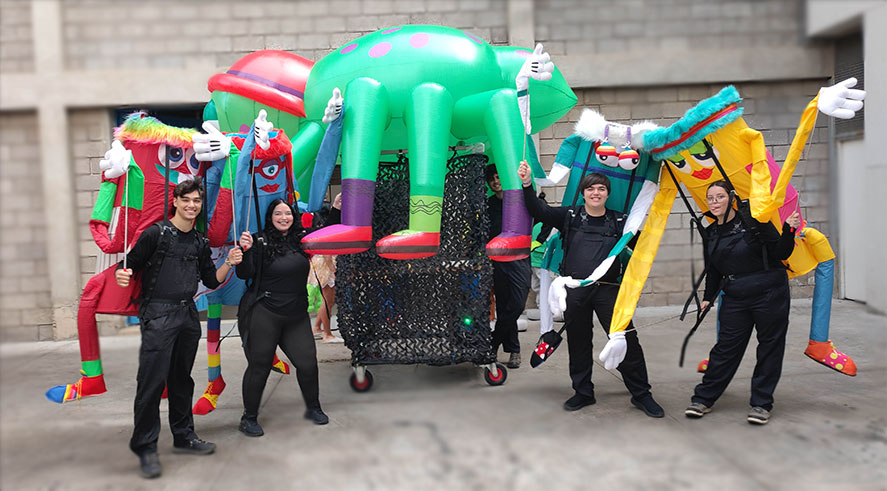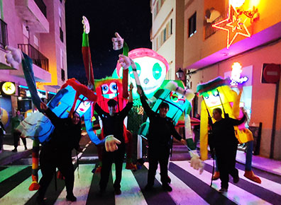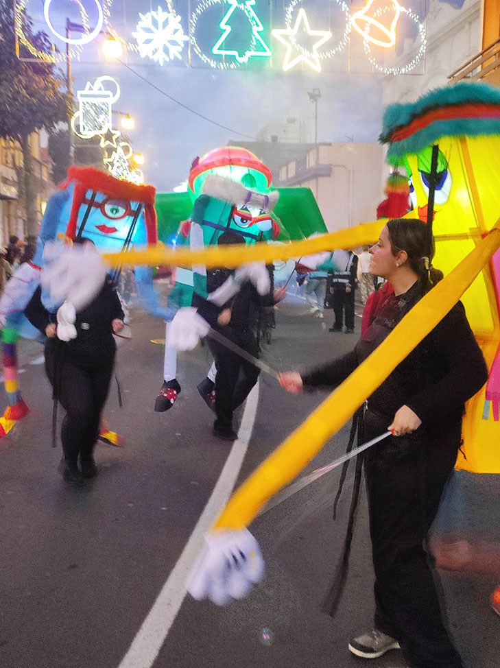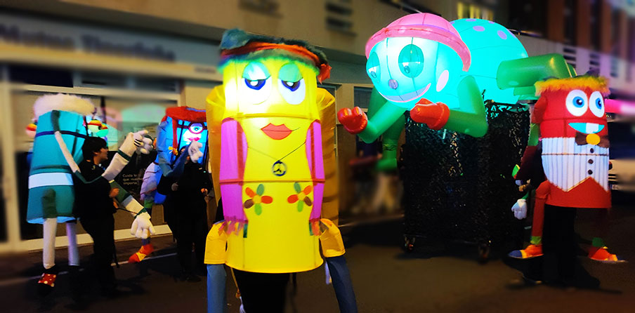 asombroso y lumínico, en el que animadores portan muñecos de grandes